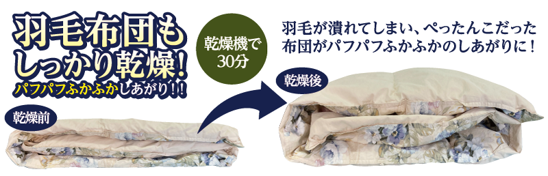 お布団の乾燥では、「27キロ型乾燥機で30分程度」かけていただくと、