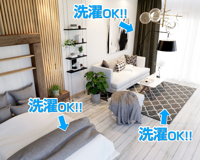 「羽毛布団」「複数の毛布」「カーテン」「シーツ」「ラグ」などの、大物と呼ばれる物の洗濯が可能です。